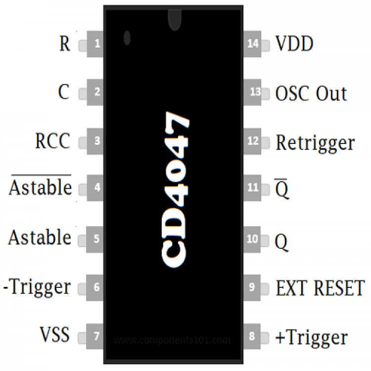 CD4047 Monostable Multivibrator: