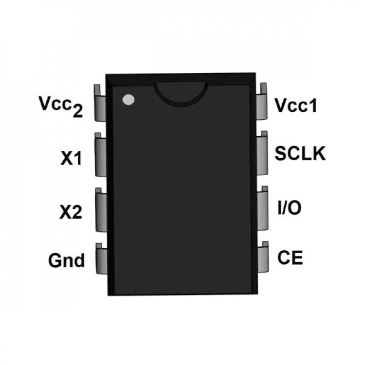 1 | Vcc2 | Second supply input, when Vcc2 is greater than Vcc1 + 0.2V, DS1302 powers through this pin |