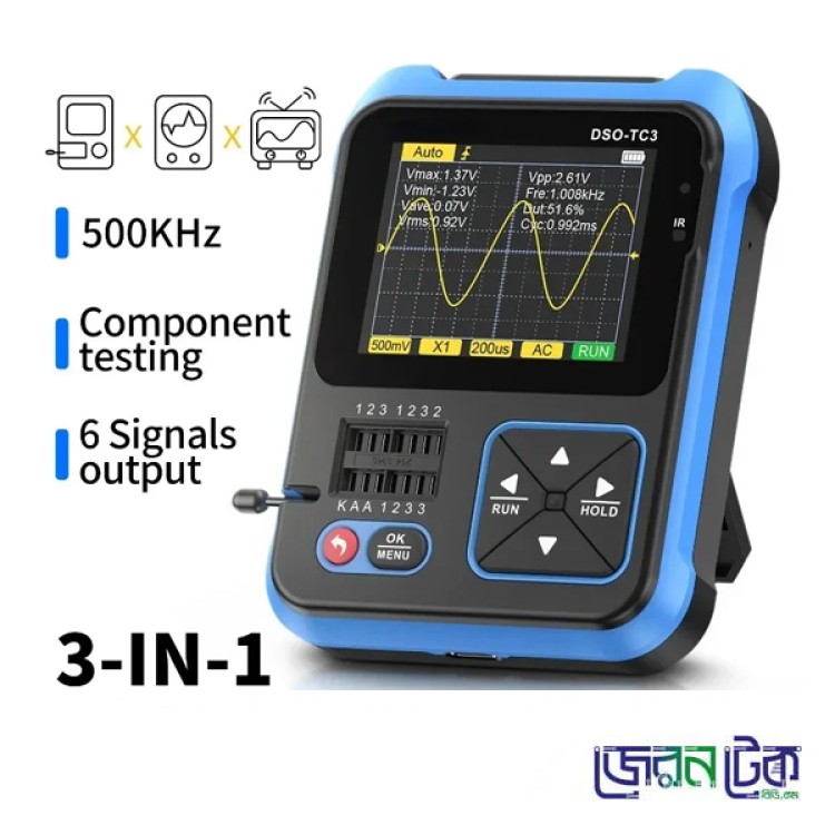 FNIRSI DSO-TC3 3in1 Digital Oscilloscope with Transistor Tester Function Diode Signal Generator.