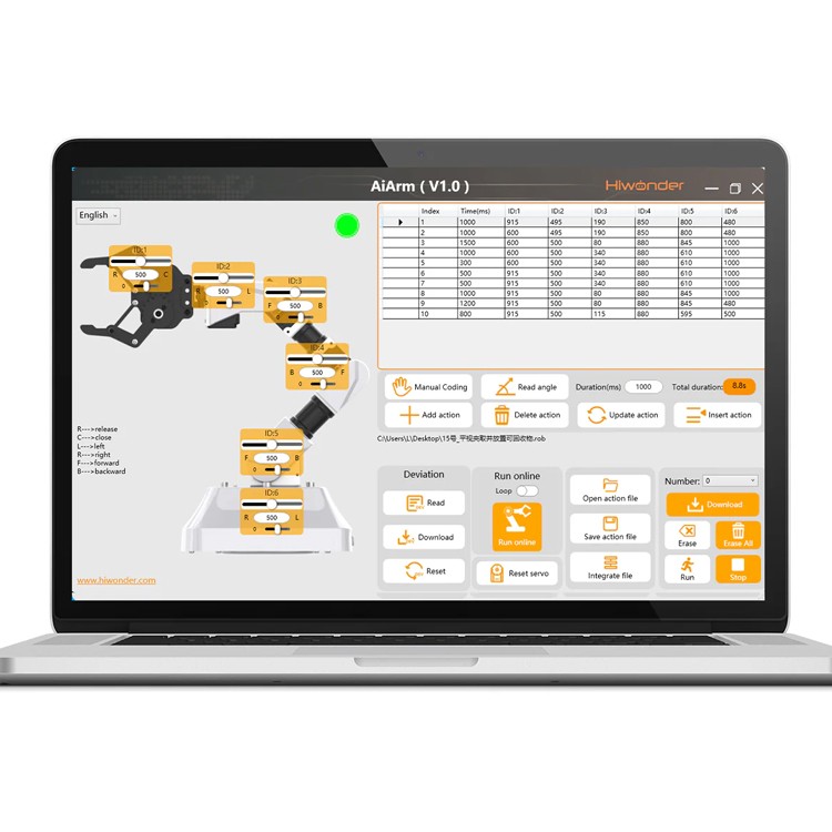 - 【Different Motion Control Methods】Whether it's PC software control, offline control, or inverse kinematics control, you have the versatility to design and edit various actions, unlocking the full potential of the robot arm's capabilities.